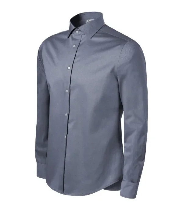 navrženo předním českým krejčím Romanem Humlíčkem příze z extra dlouhých vláken zúžený střih s bočními švy dvojité sedlo a záševky na zadním dílu dvoudílný košilový límec vyztužené špičky límce přední kraje začištěny légou dlouhé rukávy s kulatou manžetou na 2 knoflíčky perleťové knoflíčky v barvě 00 (2 náhradní navíc) tvarovaný dolní kraj