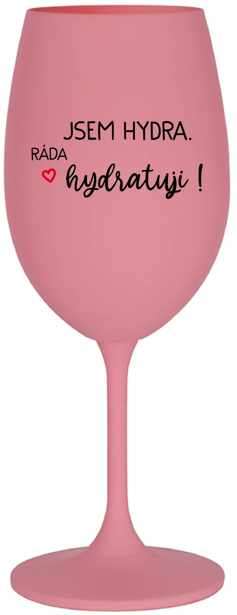 JSEM HYDRA. RÁDA HYDRATUJI! - růžová sklenice na víno 350 ml