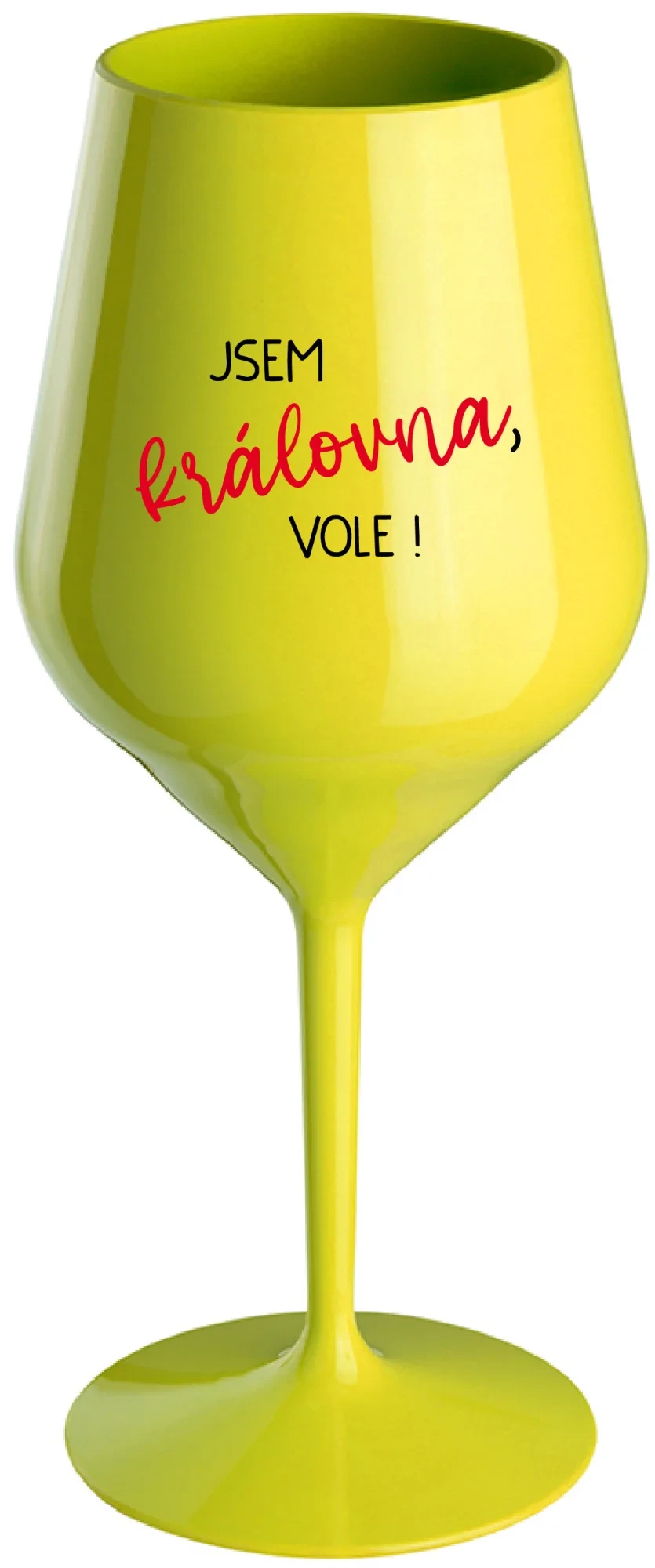 JSEM KRÁLOVNA, VOLE! - žlutá nerozbitná sklenice na víno 470 ml
