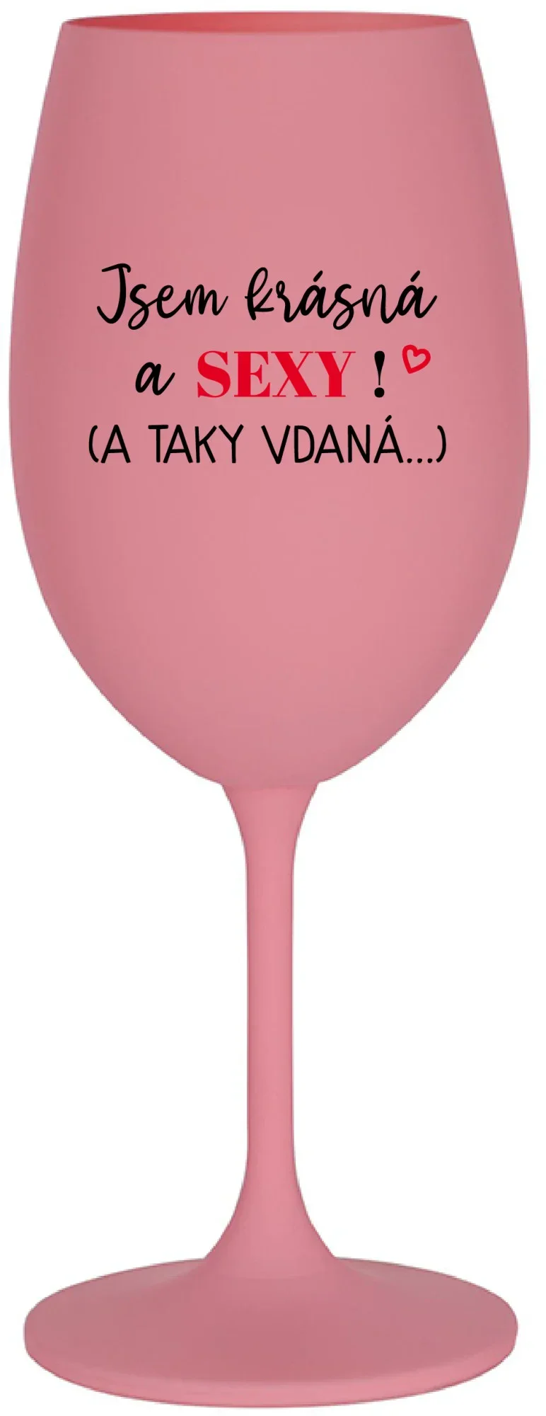 JSEM KRÁSNÁ A SEXY! (A TAKY VDANÁ...) - růžová sklenice na víno 350 ml