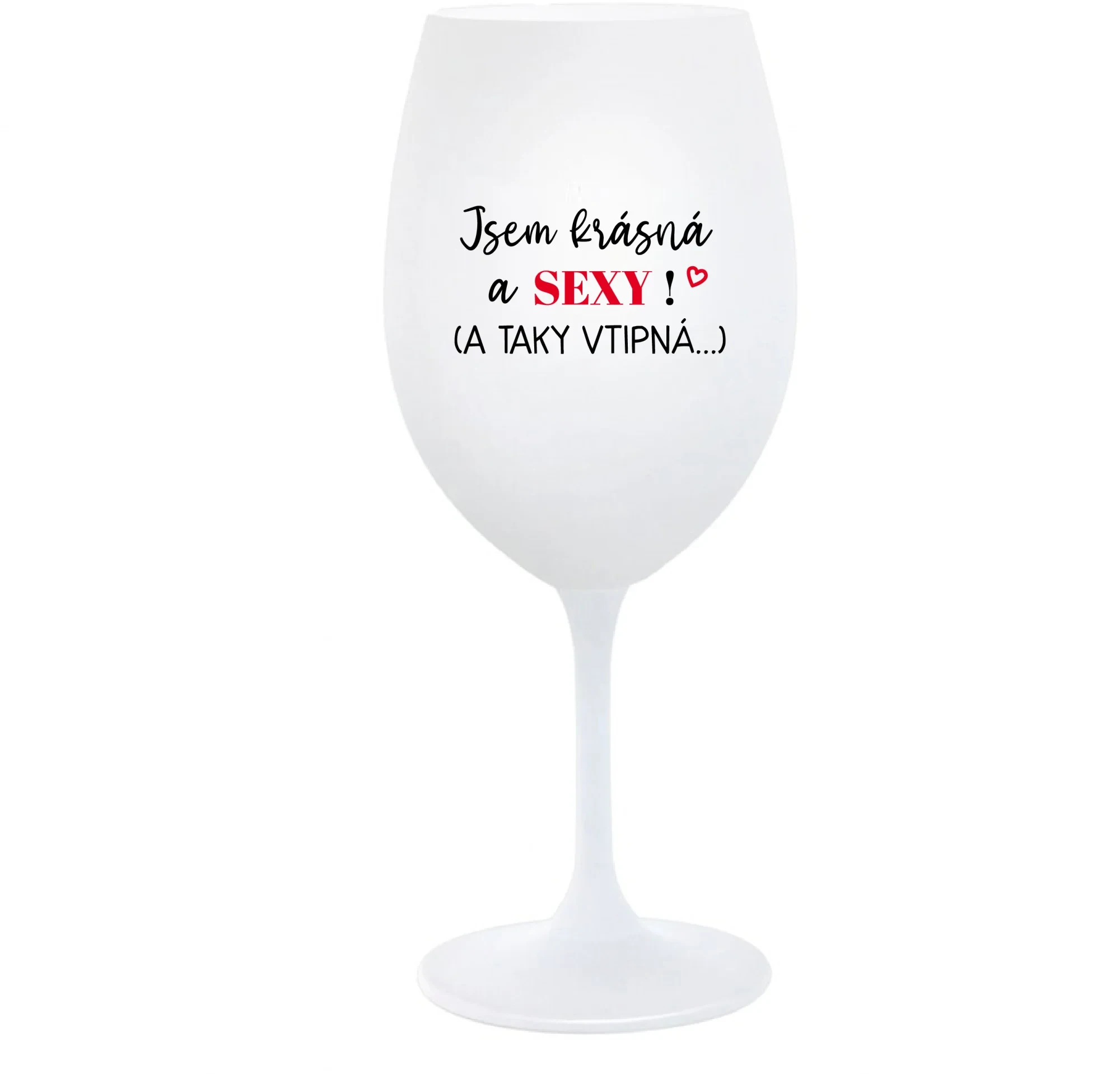 JSEM KRÁSNÁ A SEXY! (A TAKY VTIPNÁ...) - bílá sklenice na víno 350 ml