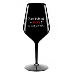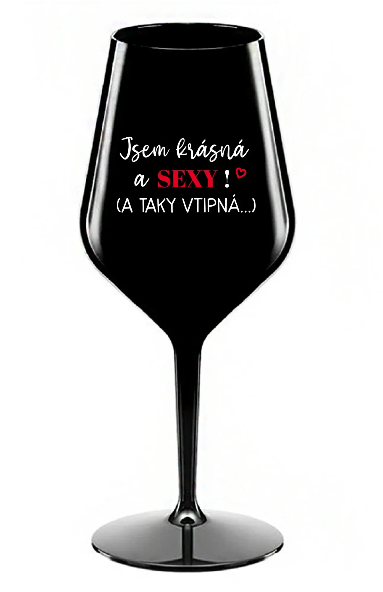 JSEM KRÁSNÁ A SEXY! (A TAKY VTIPNÁ...) - černá nerozbitná sklenice na víno 470 ml