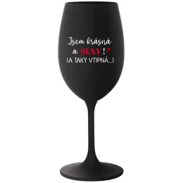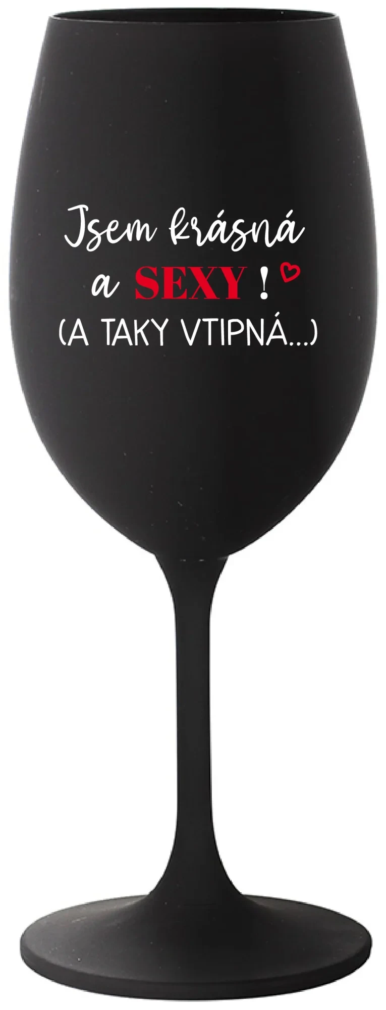 JSEM KRÁSNÁ A SEXY! (A TAKY VTIPNÁ...) - černá sklenice na víno 350 ml