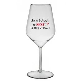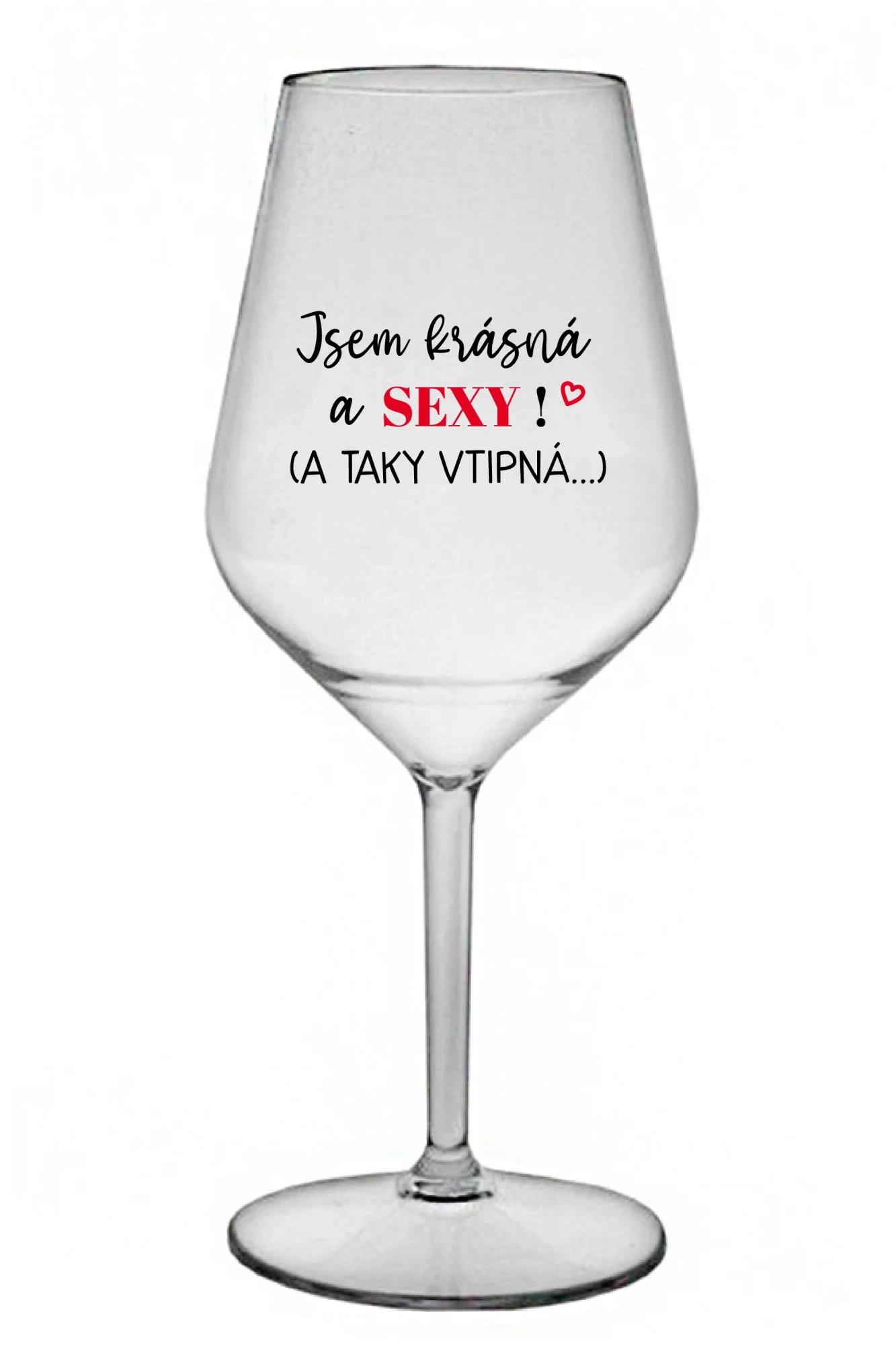JSEM KRÁSNÁ A SEXY! (A TAKY VTIPNÁ...) - čirá nerozbitná sklenice na víno 470 ml