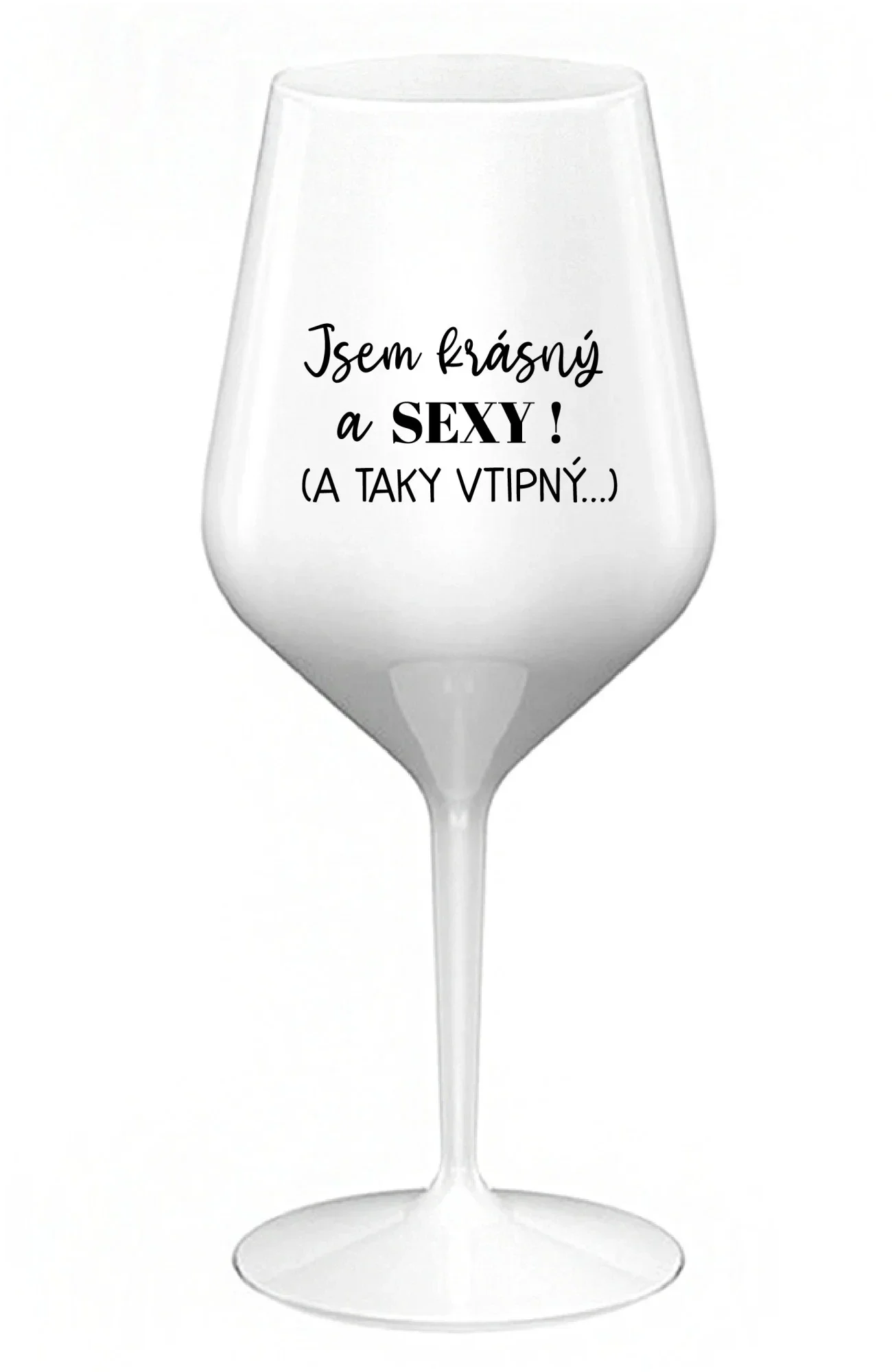 JSEM KRÁSNÝ A SEXY! (A TAKY VTIPNÝ...) - bílá nerozbitná sklenice na víno 470 ml