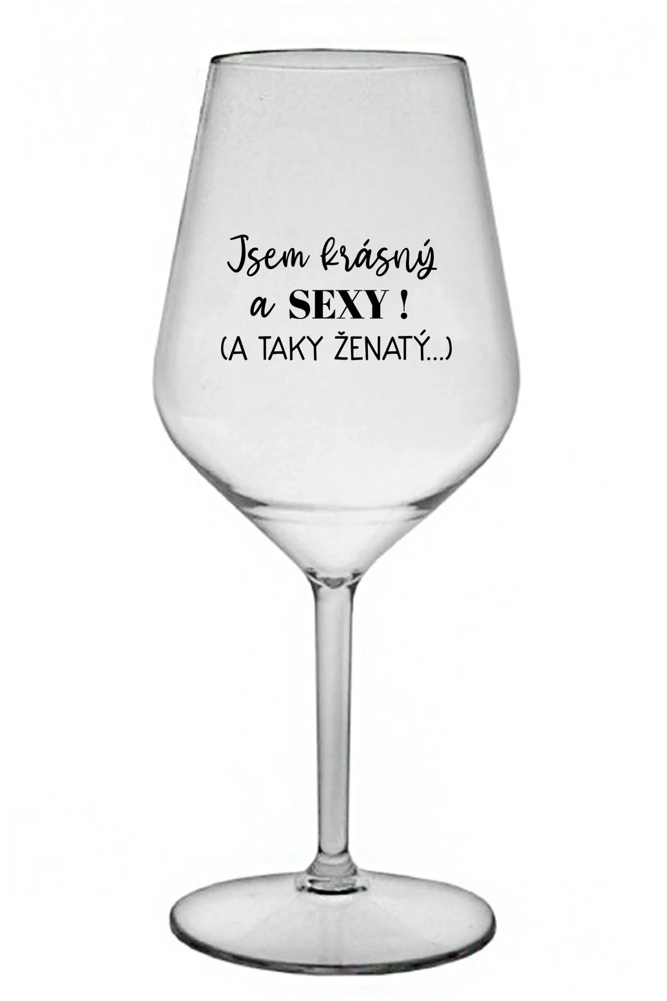 JSEM KRÁSNÝ A SEXY! (A TAKY ŽENATÝ...) - čirá nerozbitná sklenice na víno 470 ml