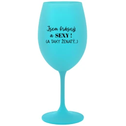 JSEM KRÁSNÝ A SEXY! (A TAKY ŽENATÝ...) - tyrkysová sklenice na víno 350 ml