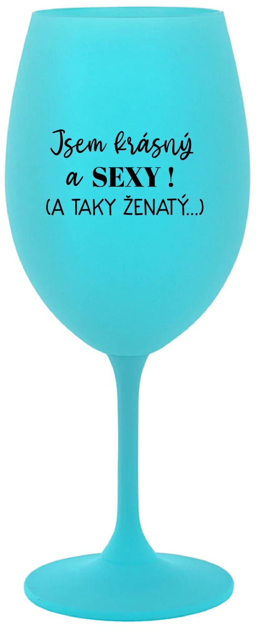 JSEM KRÁSNÝ A SEXY! (A TAKY ŽENATÝ...) - tyrkysová sklenice na víno 350 ml