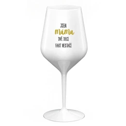 JSEM MÁMA, DVĚ DECI FAKT NESTAČÍ - bílá nerozbitná sklenice na víno 470 ml