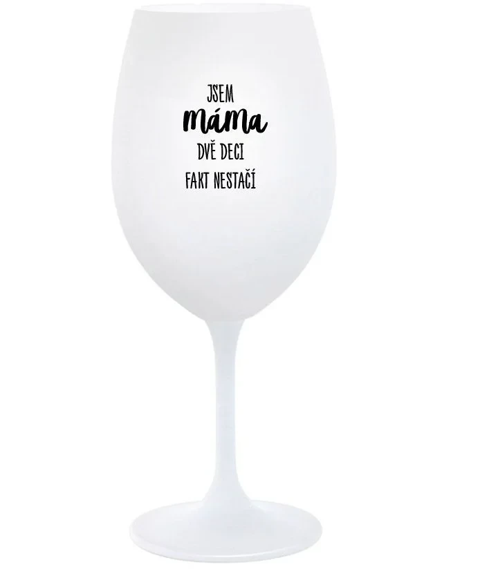 Vinná bílá sklenice s originálním motivem JSEM MÁMA, DVĚ DECI FAKT NESTAČÍ je krásným a osobitým dárkem, které ale využijete i Vy sami třeba ve chvílích, kdy si budete chtít zpříjemnit náročný den. Tyto originální vinné sklenice jsou totiž nejen pro výjimečné události, ale i pro běžné večery, které si chcete zpříjemnit sklenkou dobrého vína. Jistě proto potěší každého milovníka vína, i toho, kdo si umí svůj život vychutnat plnými doušky.