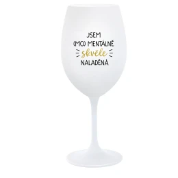 JSEM (MO)MENTÁLNĚ SKVĚLE NALADĚNÁ - bílá sklenice na víno 350 ml