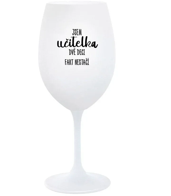 JSEM UČITELKA, DVĚ DECI FAKT NESTAČÍ - bílá sklenice na víno 350 ml