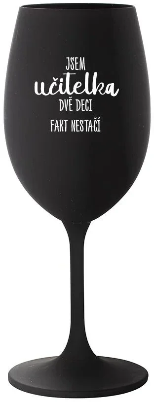 JSEM UČITELKA, DVĚ DECI FAKT NESTAČÍ - černá sklenice na víno 350 ml
