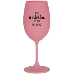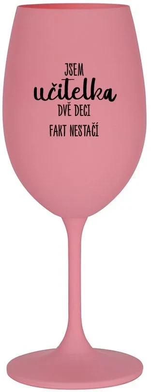 JSEM UČITELKA, DVĚ DECI FAKT NESTAČÍ - růžová sklenice na víno 350 ml