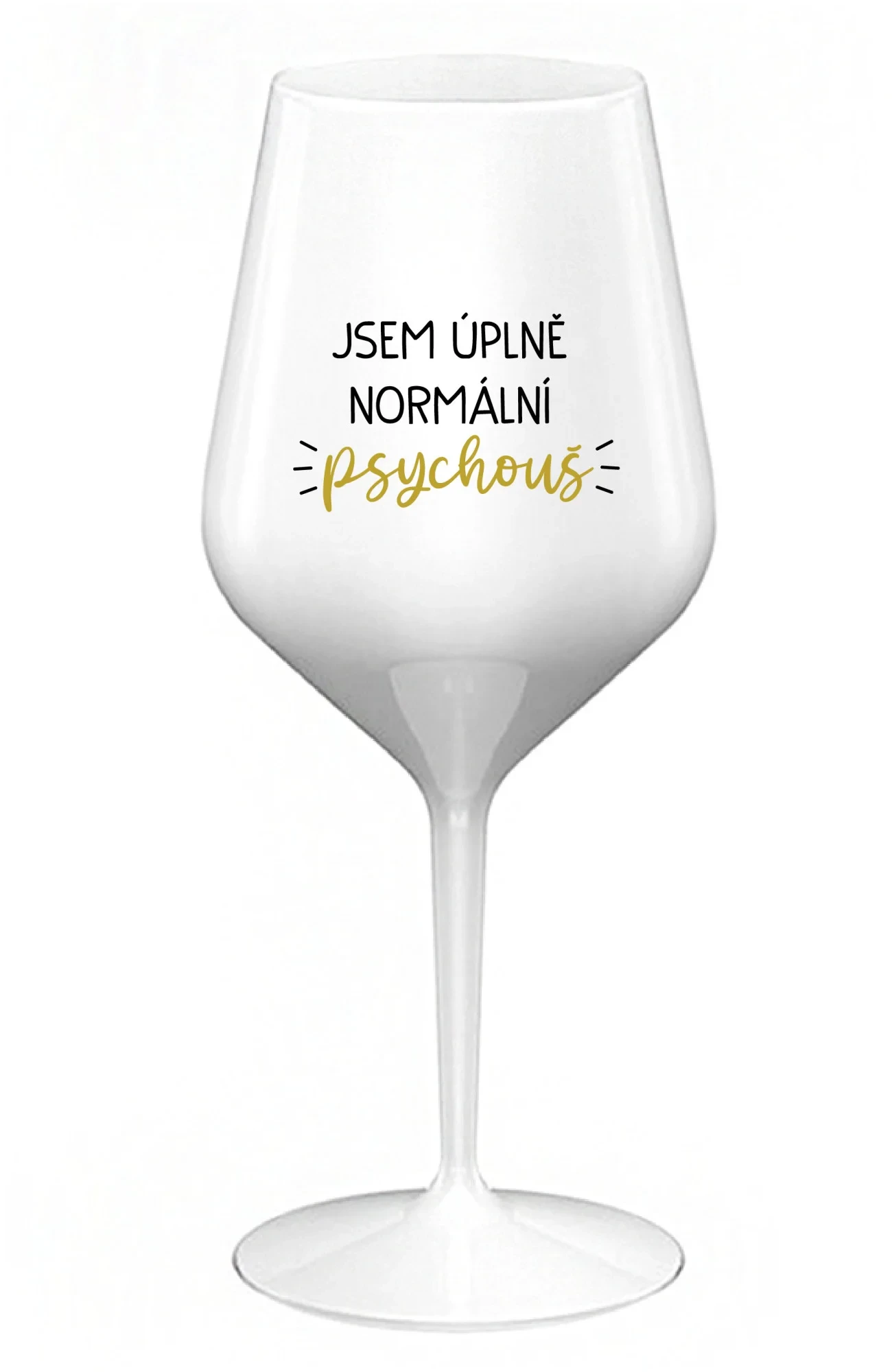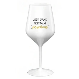 JSEM ÚPLNĚ NORMÁLNÍ PSYCHOUŠ - bílá nerozbitná sklenice na víno 470 ml