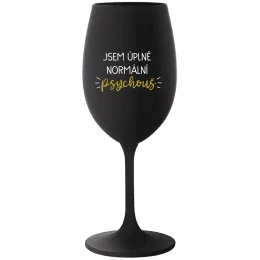 JSEM ÚPLNĚ NORMÁLNÍ PSYCHOUŠ - černá sklenice na víno 350 ml