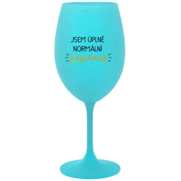 JSEM ÚPLNĚ NORMÁLNÍ PSYCHOUŠ - tyrkysová sklenice na víno 350 ml