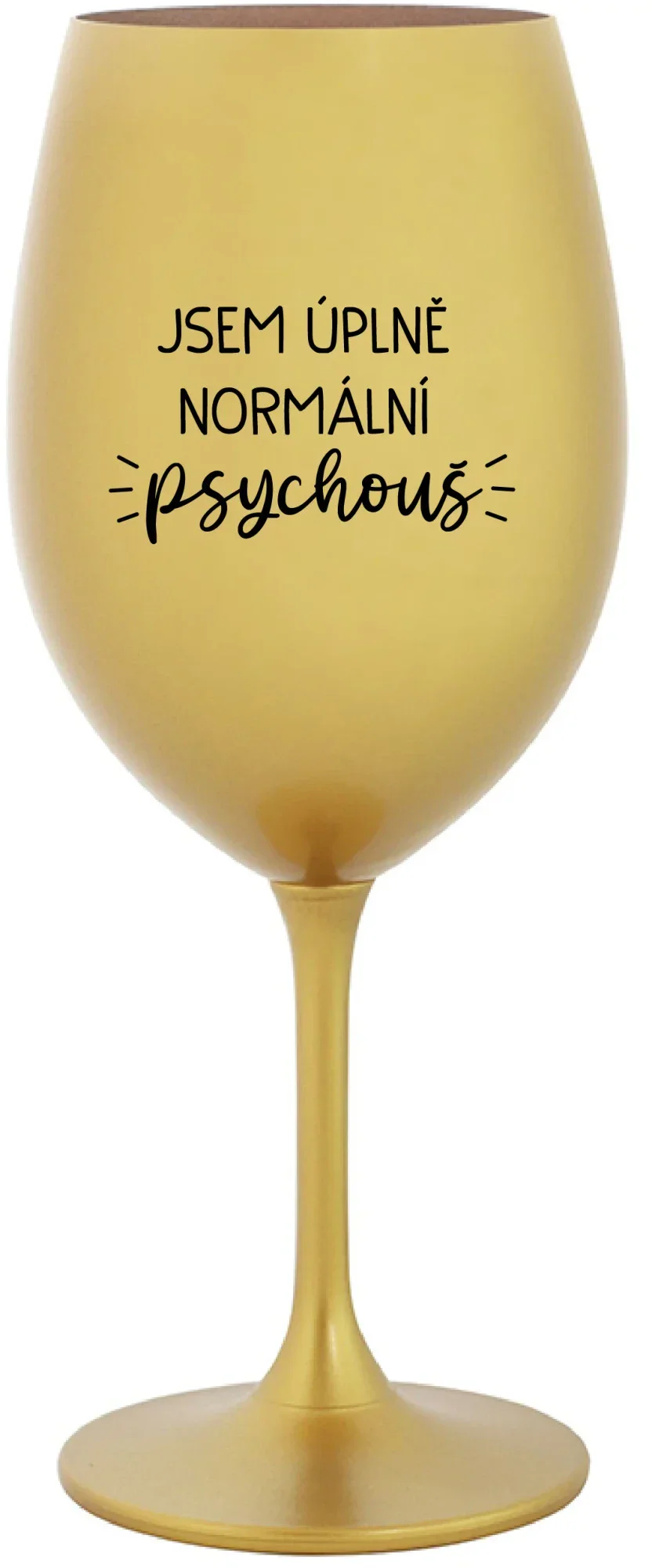 JSEM ÚPLNĚ NORMÁLNÍ PSYCHOUŠ - zlatá sklenice na víno 350 ml