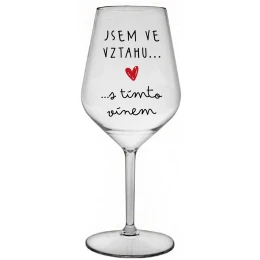 JSEM VE VZTAHU S TÍMTO VÍNEM - čirá nerozbitná sklenice na víno 470 ml