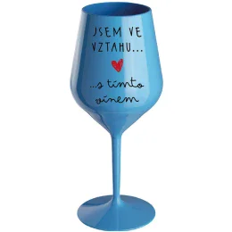 JSEM VE VZTAHU S TÍMTO VÍNEM - modrá nerozbitná sklenice na víno 470 ml