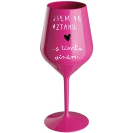 JSEM VE VZTAHU S TÍMTO VÍNEM - růžová nerozbitná sklenice na víno 470 ml