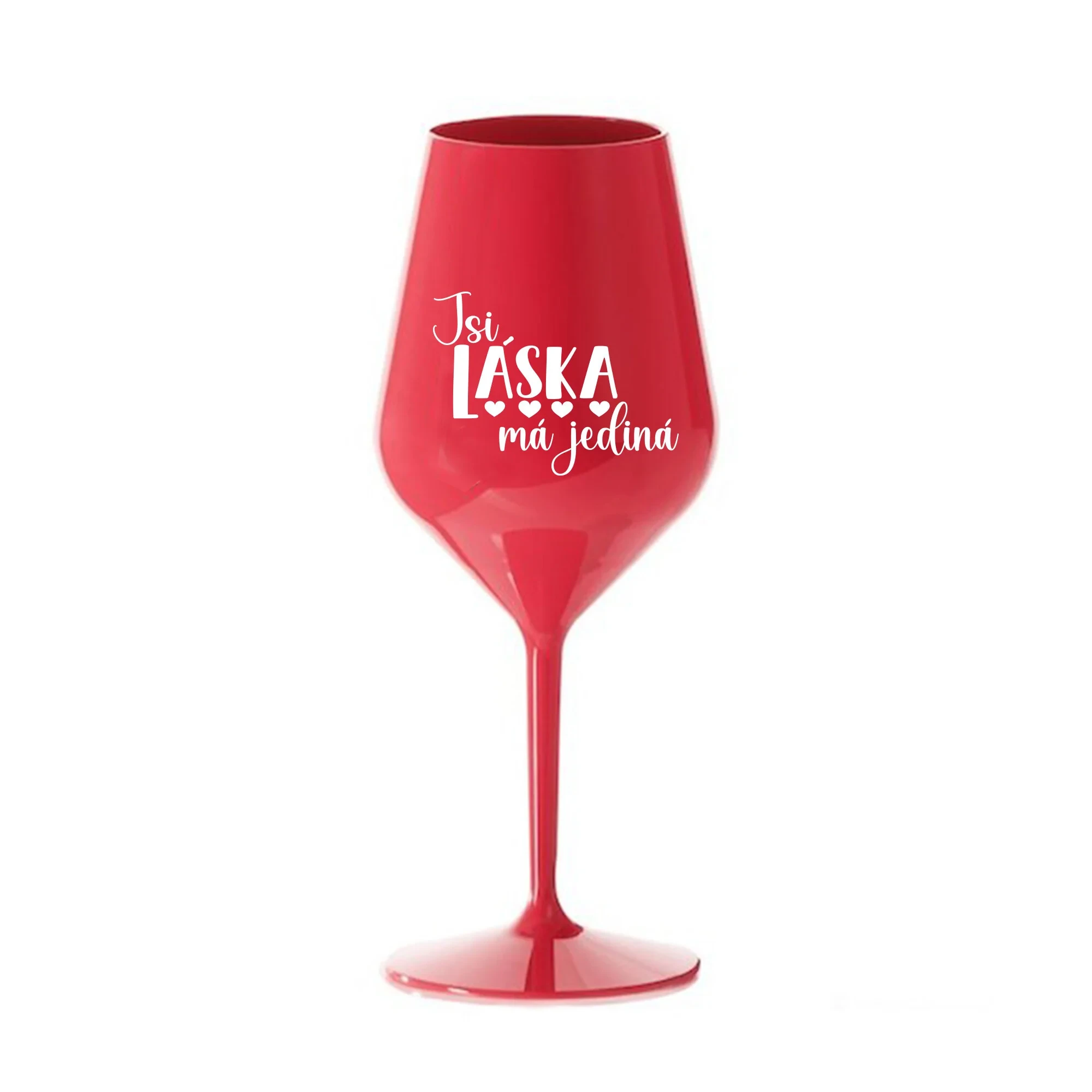 JSI LÁSKA MÁ JEDINÁ - červená nerozbitná sklenice na víno 470 ml