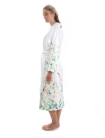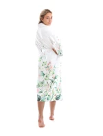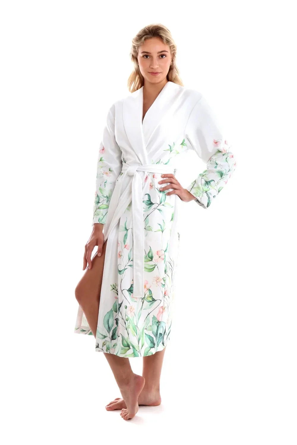 Projděte se s námi rozkvetlou jarní zahradou a nechte se hýčkat luxusním pocitem hebkosti a jemnosti. Župan Julia s romantickým jemným vzorem digitálního tisku je zhotoven z materiálu kombinujícího skvělou absorpční schopnost, měkkost a hedvábný omak bambusové smyčky na rubu materiálu a saténově hladkého povrchu tvořeného lesklým mikrovláknem na lícové straně.