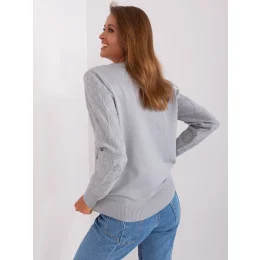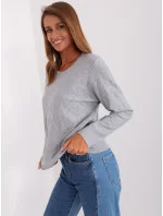 Šedý dámský klasický svetr s žebrovanými manžetami .