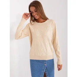 Světle béžový dámský klasický svetr s žebrovanými manžetami .