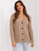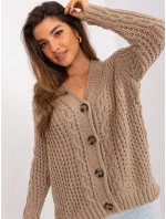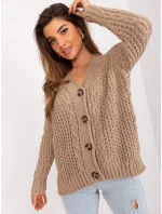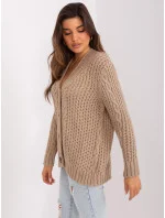 Hnědý dámský svetr bez knoflíků s kostkami (BA-SW-8001-1.16P)