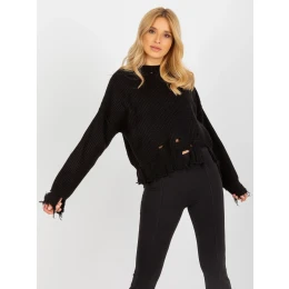 Černý asymetrický svetr s dírami z vlny RUE PARIS .