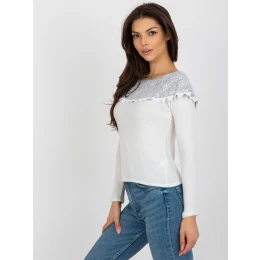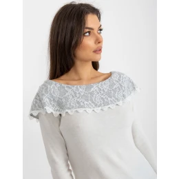 Béžovo-šedá krátká halenka s odhalenými rameny .