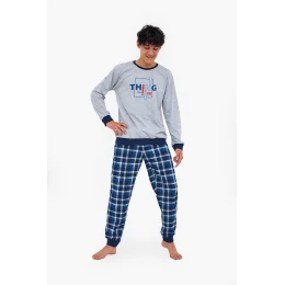 Junior chlapecké pyžamo Thing 967/54 Šedá s tmavě modrou vzor - Cornette