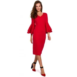 K002 Plášťové šaty s volánkovými rukávy - červené