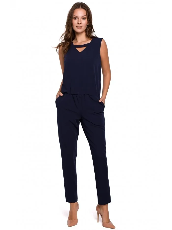 K009 Jednodílný overal s výstřihem do V - tmavě modrý