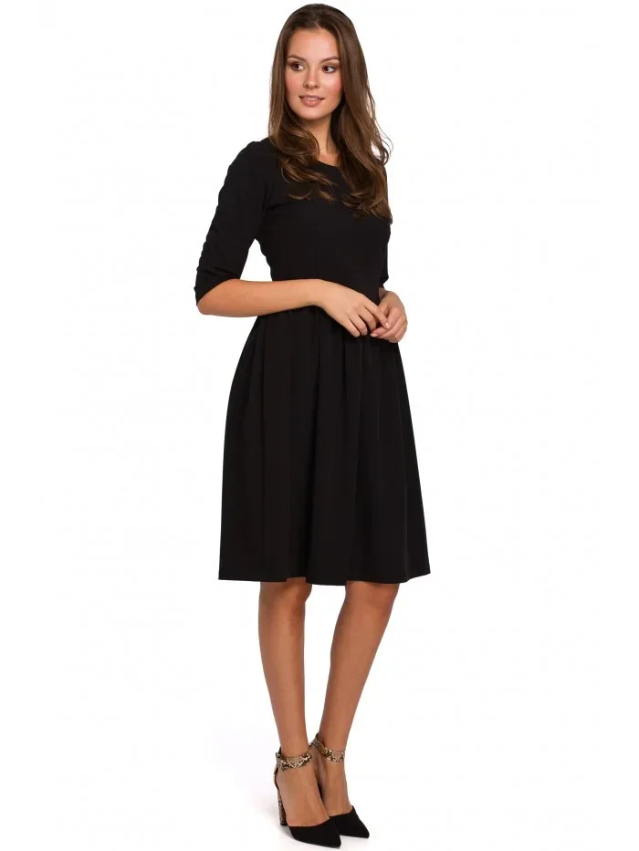K010 Přiléhavé šaty s nabíraným pasem - černé