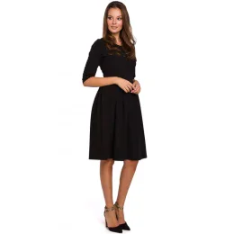 75% polyester 20% wiskoza 5% elastan Tyto klasické šaty ve fitted střihu, které se příjemně pohupují při každém vašem pohybu, si zamilujete. Živůtek je přiléhavý k tělu, doplněný decentním zaobleným výstřihem a bohatou sukní nabíranou v pase. DETAILY PRODUKTU: Tkaná látka Přiléhavý živůtek Zaoblený výstřih Tříčtvrteční rukávy Nabraný pas Rozšířená sukně ke kolenům Skrytý zip na zádech Modelka měří 175 cm a nosí velikost S