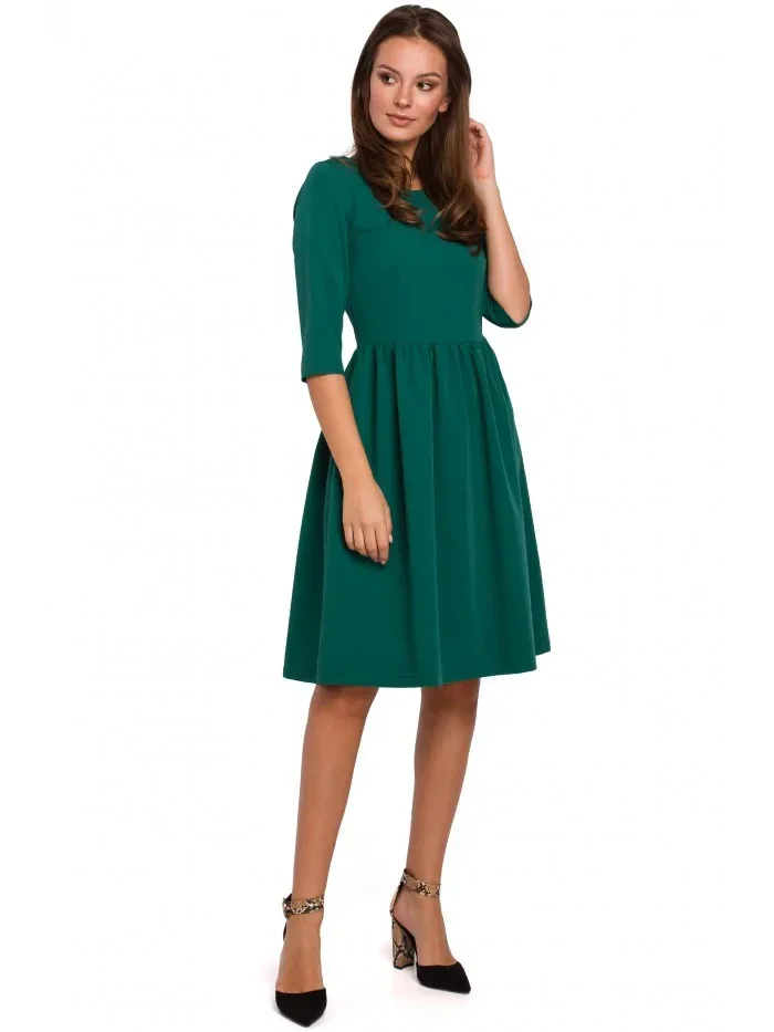 K010 Přiléhavé šaty s nabíraným pasem - zelené