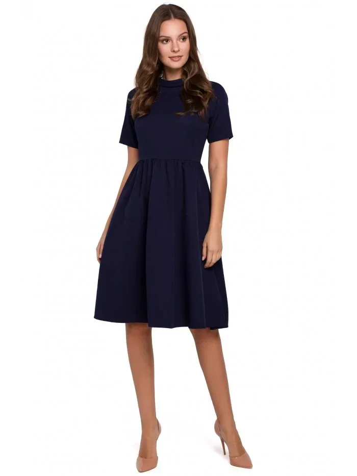 K028 Šaty s ohrnutým výstřihem - tmavě modré
