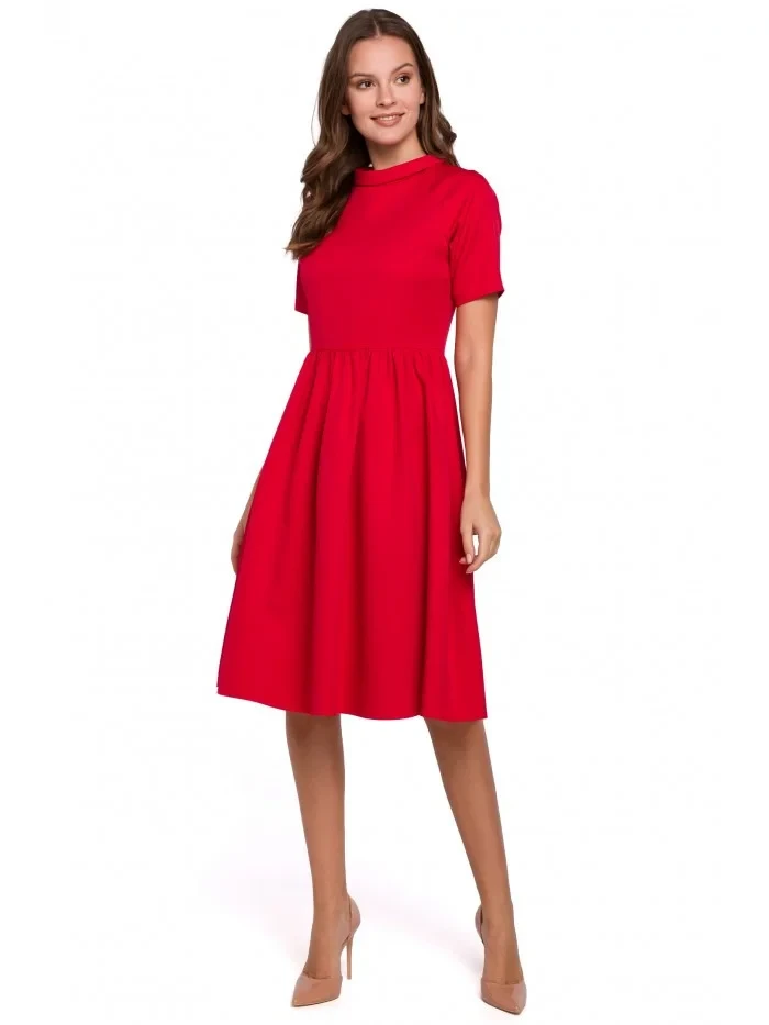 K028 Šaty s ohrnutým výstřihem - červené