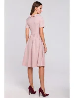 K028 Šaty s ohrnutým výstřihem - krepové růžové