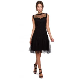 95% polyester 5% elastan TULLE: 50% nylon 50% polyester Krásné šaty plné působivých detailů. Vyrobené z tylu s tkanými puntíky a jemným krajkovým lemem. Přizpůsobené linii boků, krásně zeštíhlují postavu. Průhledná záda vypadají fenomenálně! PODROBNOSTI O PRODUKTU: Tkaná látka a puntíkatý tyl s krajkovým lemováním Šaty áčkového střihu Bez rukávů Vrstvené šaty Skrytý boční zip Délka nad kolena Modelka měří 175 cm a nosí velikost S