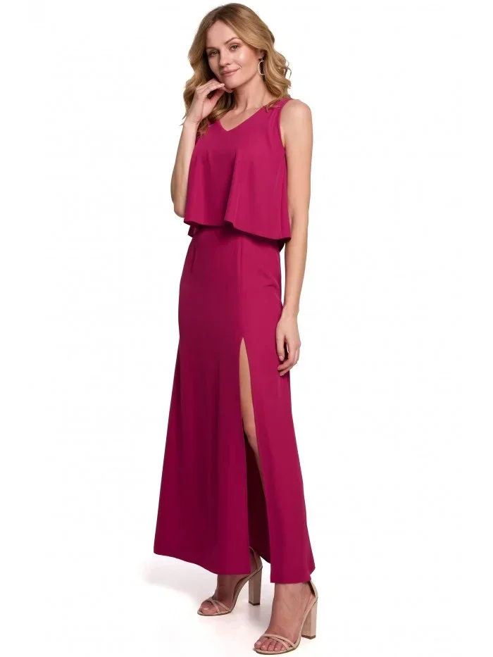 K048 Maxi šaty s volánkem - švestka