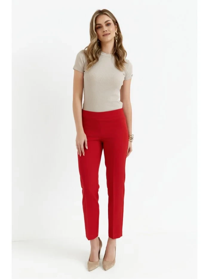 95% polyester 5% elastan Klasické kalhoty s úzkými nohavicemi a bočními kapsami jsou základem šatníku. DETAILY PRODUKTU: tkaná látka skrytý boční zip elastický pas v zadní části Naše modelka měří 173 cm a nosí velikost S
