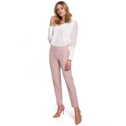 K055 Kalhoty s úzkými nohavicemi - krepová růžová