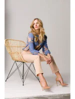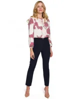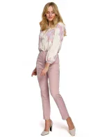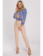 PODROBNOSTI O VÝROBKU: tkané kalhoty s úzkými nohavicemi s řasením v přední části zadní nohavice se středovým prošitím rozparky v zadní části zapínání na zip a knoflík v přední části naše modelka je 173 cm vysoká a nosí velikost S