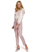 Kalhoty s úzkými nohavicemi jsou základem garderoby. Díky zmačkané přední části nohavice a ozdobnému středovému prošití v zadní části nohavice vymezené rozdělením získává tento klasický kousek svěží, módní vzhled. Jsou vyrobeny tak, aby se hodily jak do kancelářského, tak do neformálního stylu oblékání.