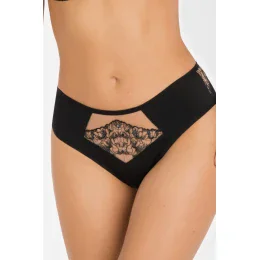 PRZÓD: z neprůhledného mikrovlákna, vyšívaná vsadka podšitá stabilním tylem, nohavice zakončené úzkou gumičkou.