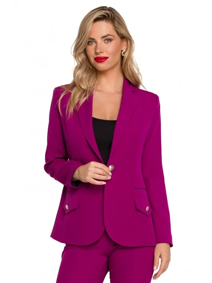 K141 Sako s dvojitými kapsami s klopou - rubínová barva