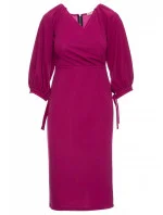 K152 Zavinovací šaty s pouzdrovými rukávy - švestka